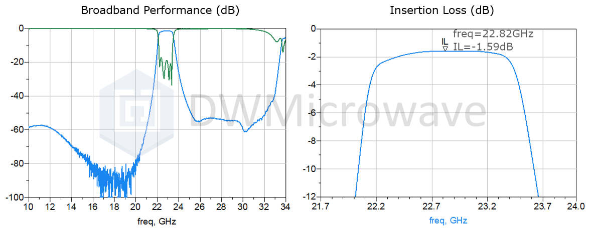 如上图所示,SWF系列滤波器适用于10~50GHz,插损小,温漂小的应用。