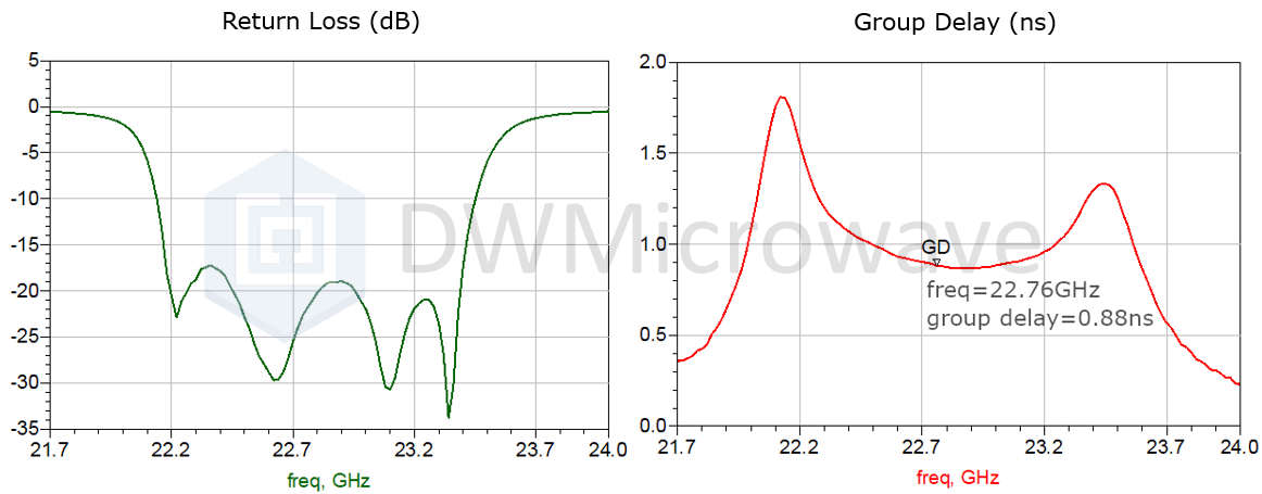 SWF系列滤波器具有超低的温度漂移,以21至23GHz滤波器为例,下表给出其频率温飘系数TCF(Temperature Coefficient of Frequency) ​